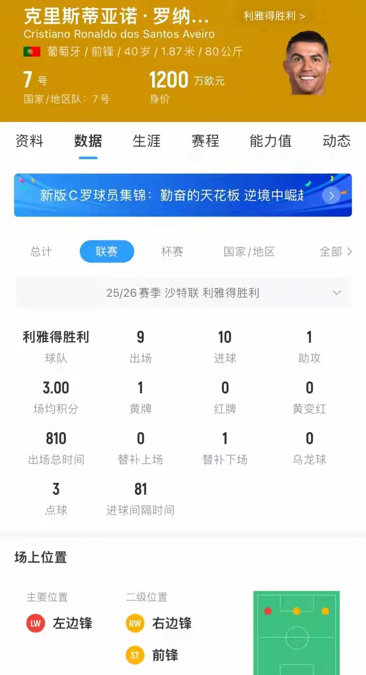 与此形成对比的是,年长他5岁的C罗在40岁依然保持高效,本赛季已打入25球,身价稳定在1200万欧元。而38岁的梅西本赛季直接参与进球数超过70个,身价维持在1800万欧元,二人均展现出超越年龄的竞技状态。